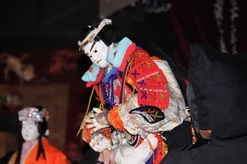 浄瑠璃の語りと三味線に合わせて、一体の人形を3人で操るもので、「伽羅先代萩」「真桑誉義農源七郎」をはじめレパートリーは約20演目にものぼります。