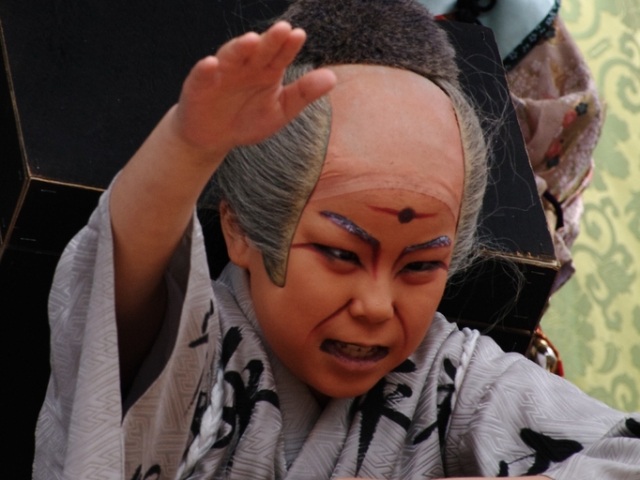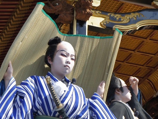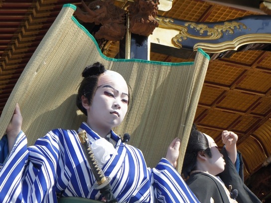 豪華な装飾が施された曳やま舞台の上で演じられる子ども歌舞伎