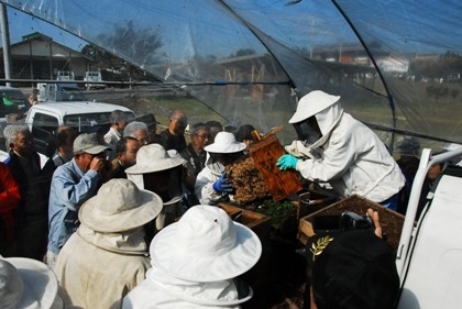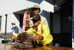 全国の愛好家たちが、自分で育てた自慢のヘボ(クロスズメバチ)の巣を持ち合いその重量を競うもので、毎年大変にぎわいます。