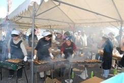 香ばしいヘボ五平餅には長蛇の列が並びます。