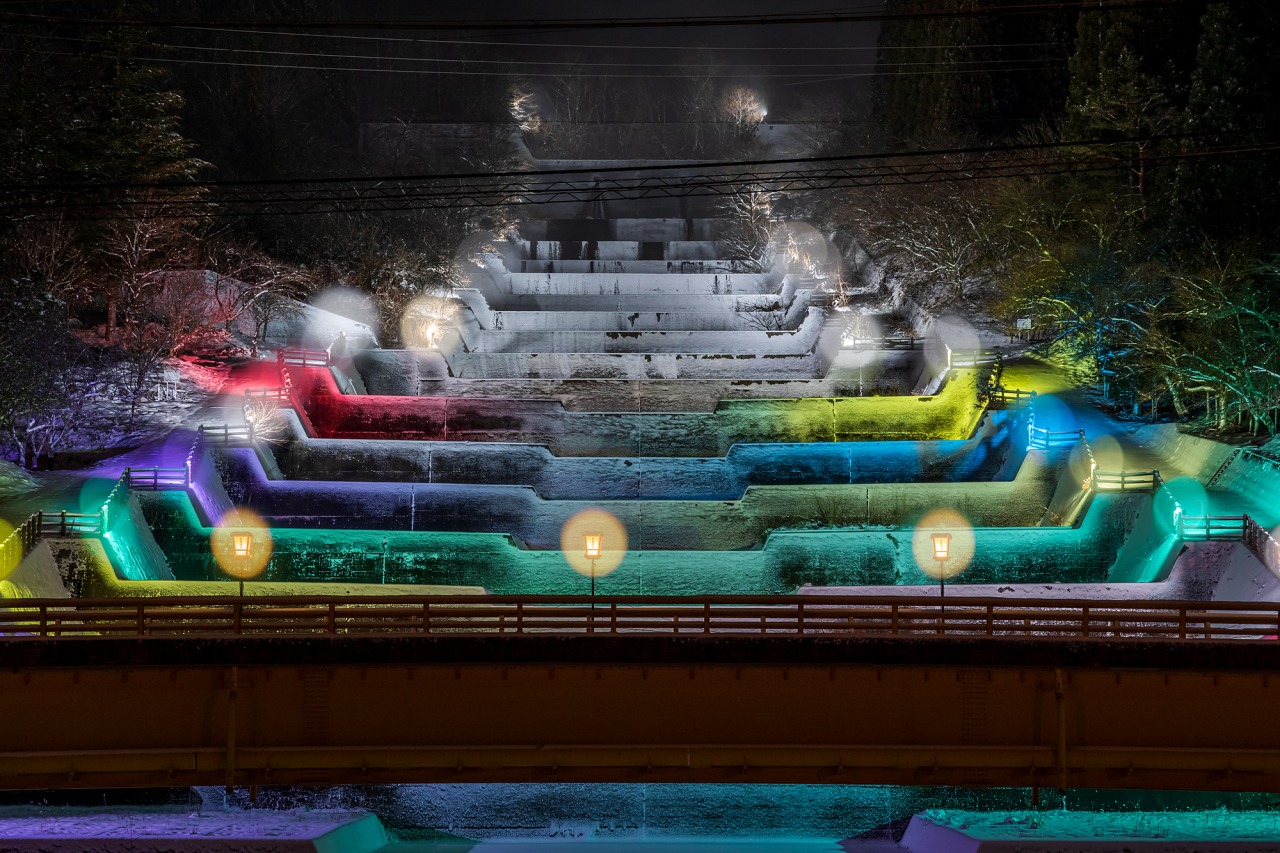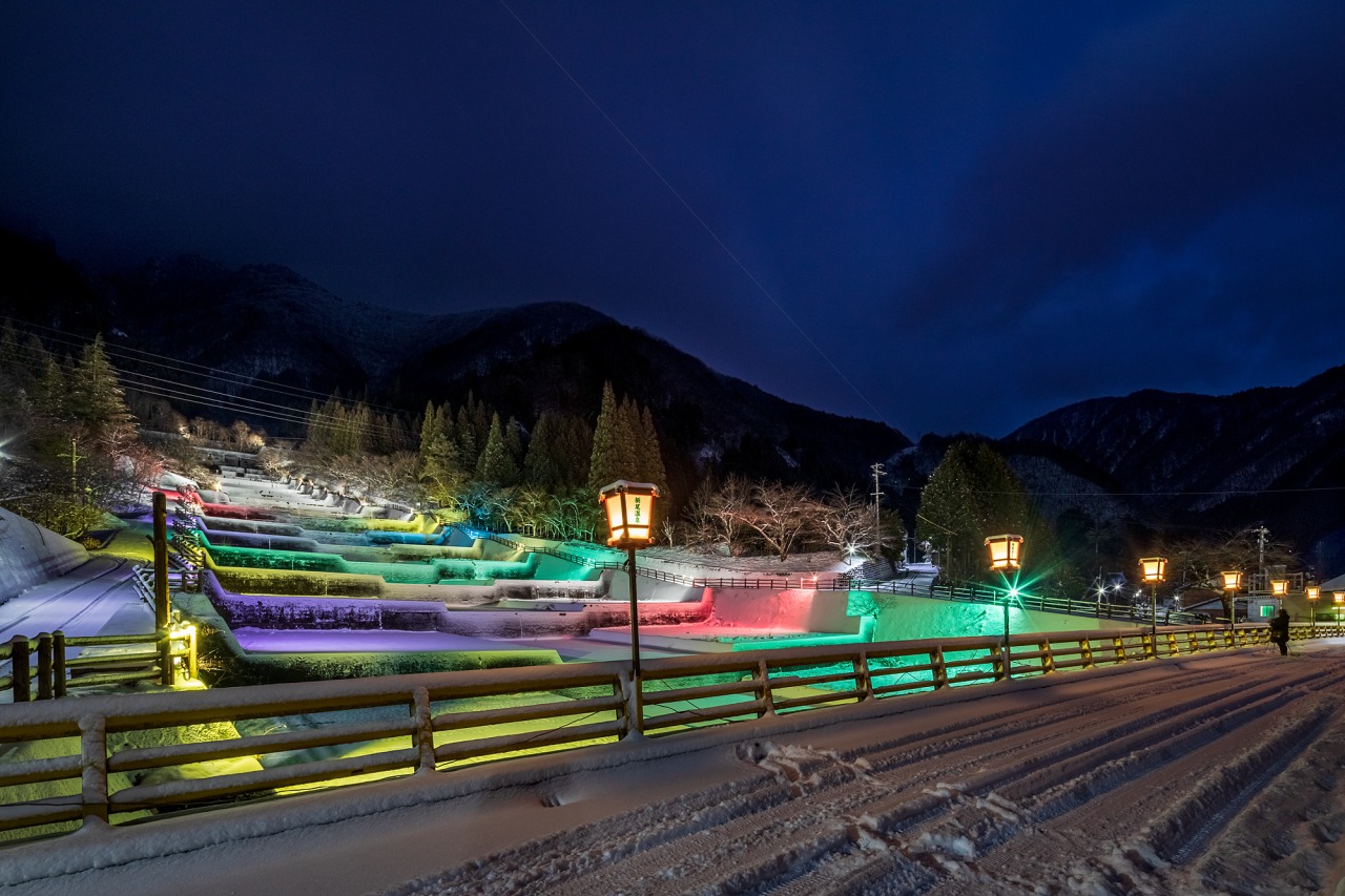 栃尾温泉 洞谷雪桜ライトアップ