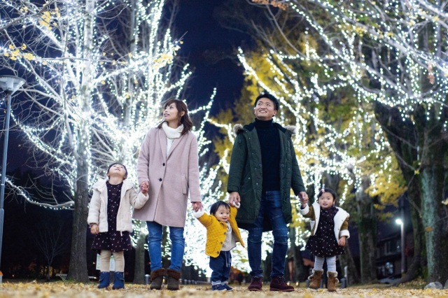 冬の夜空の下、家族や友人、大切な人と白く輝く光の中で散策を楽しみにお出かけしてみては。