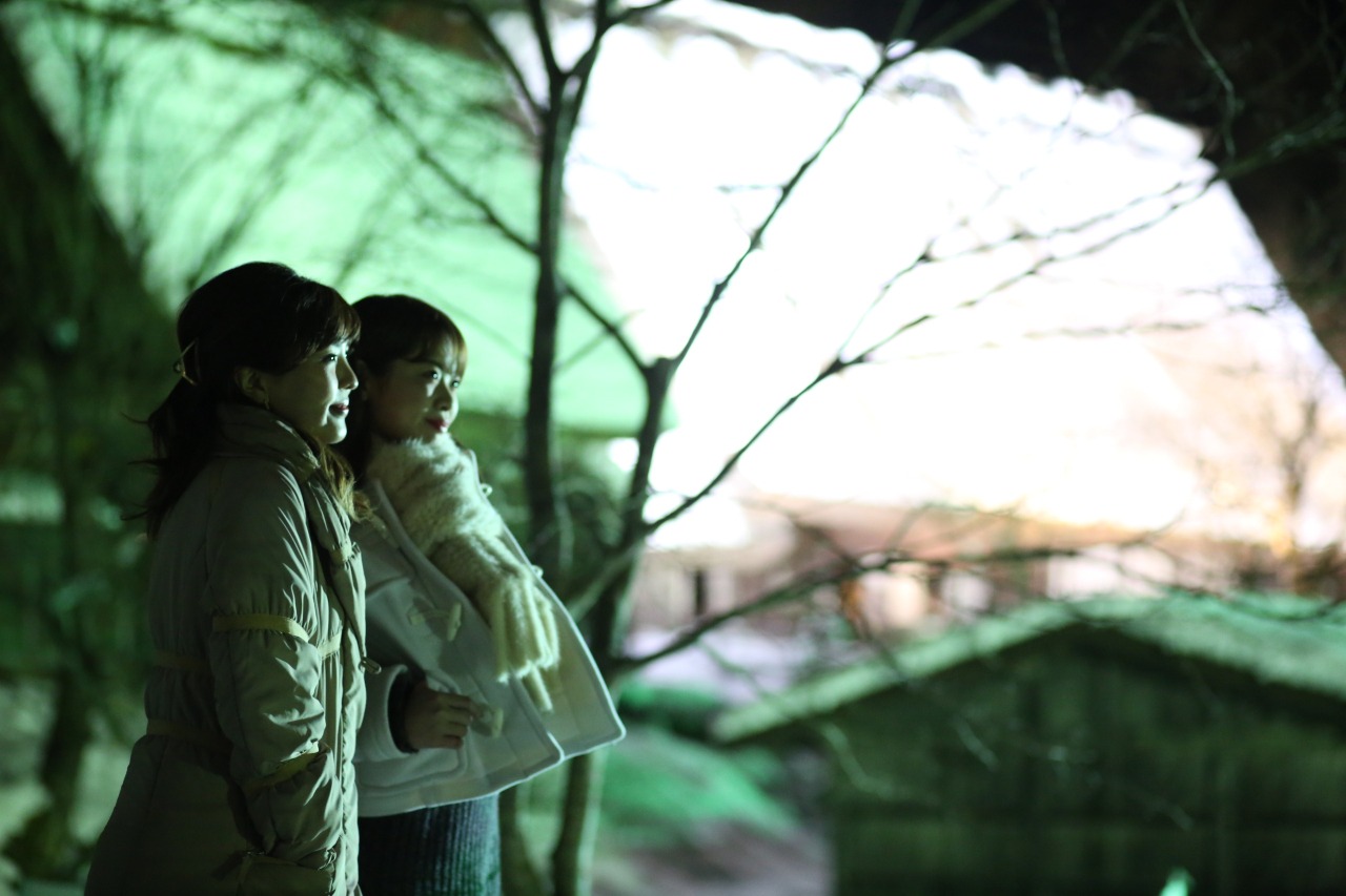 雪化粧した合掌造り家屋がライトで照らされる光景は感動まちがいなし。まるで昔ばなしの世界に飛び込んだようです。