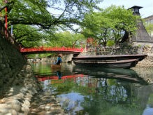 街の中心を流れる水門川を楕円形のたらい舟に乗って下ります。