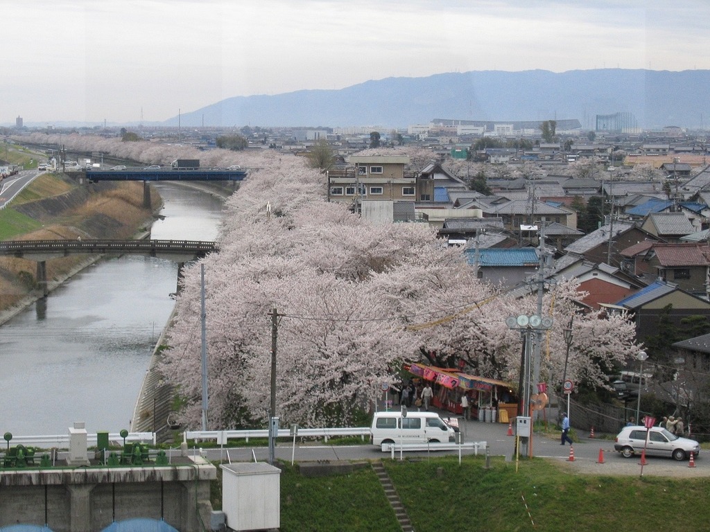犀川堤には約800本の桜並木が3.7キロにわたって続いています。ぼんぼりや花見小屋が立ち並ぶ桜のトンネルを抜けると墨俣一夜城があり、最上階から眺める景色がおすすめです。