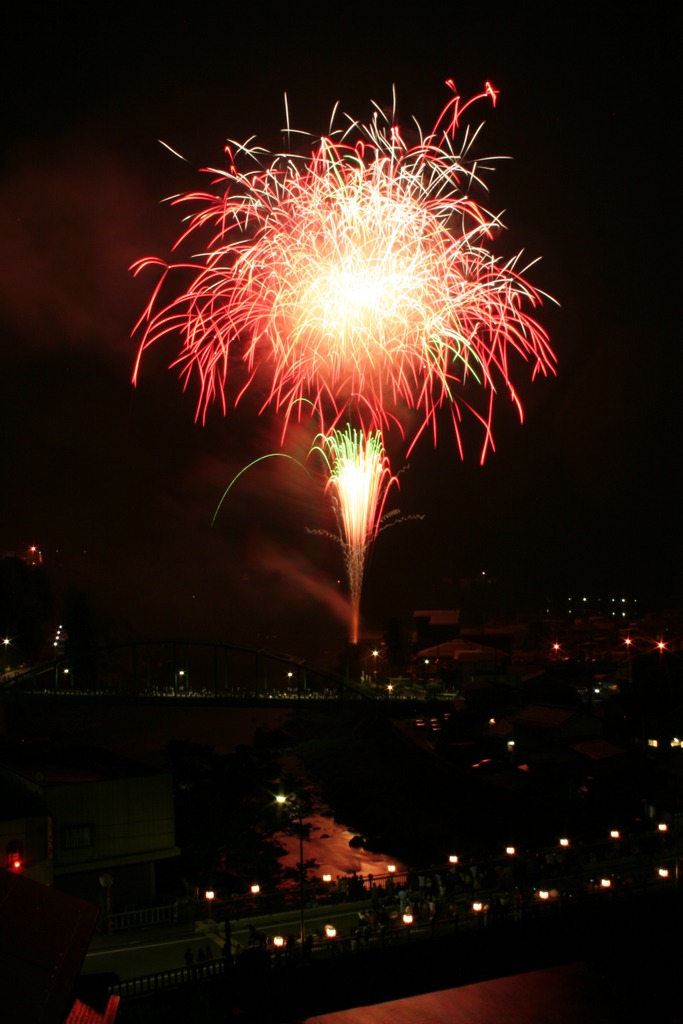 河川増水時、花火のみ翌日15日(21時~)延期予定。