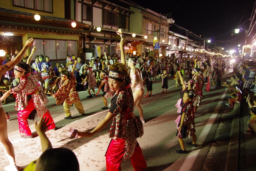 お練りとともにまつりを盛り上げるのが「よさこいおさか踊り」。元気いっぱい100名以上が踊る姿は圧巻です。