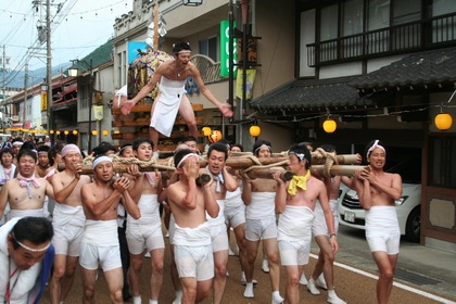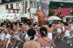 大きな神輿を裸の若衆が担いで練り歩く勇壮な祭り