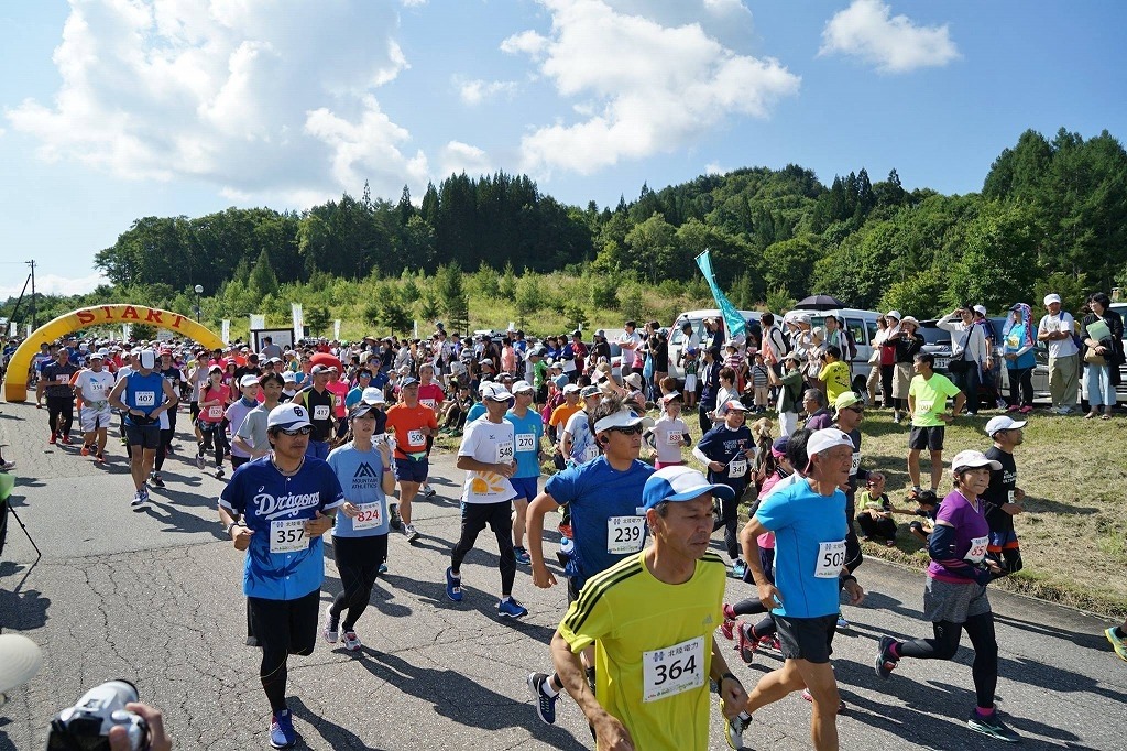 「天空の里」と呼ばれ、「日本の里100選」にも選ばれた山之村。毎年9月に開催される「だいこんマラソン」は、昔ながらの茅葺屋根が並ぶ集落や牧場などがあるロケーションの中、信号のない山里を駆け抜けるマラソン大会。