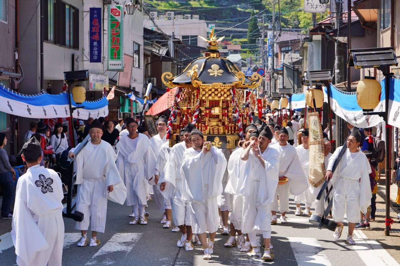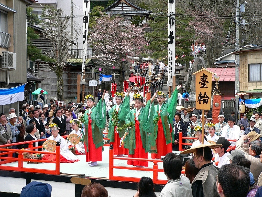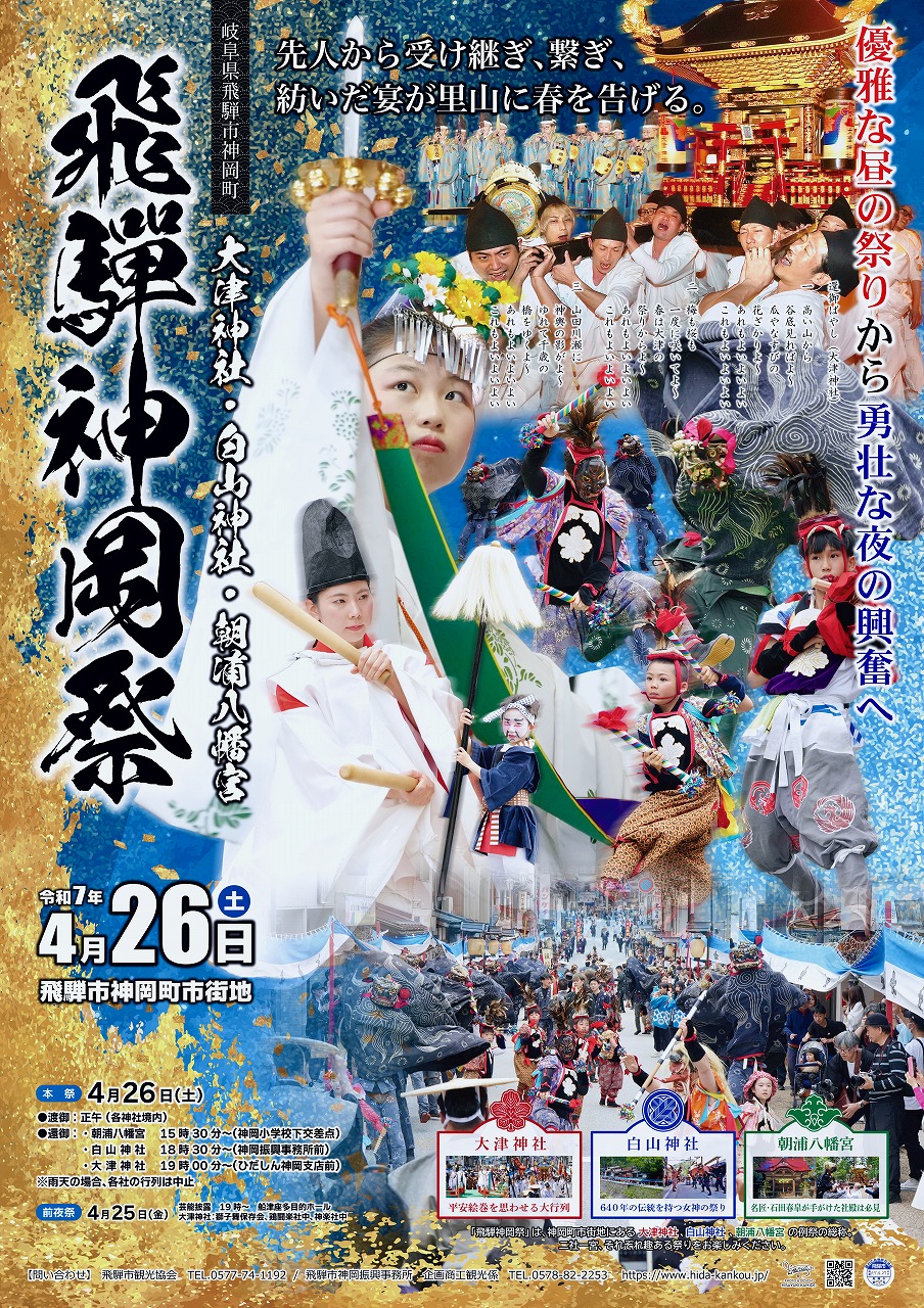 奥飛騨に春の訪れを告げる「飛騨神岡祭」は、神岡町市街地にある大津神社、白山神社、朝浦(あそら)八幡宮の三社で同日にそれぞれ行われる例祭の総称で、「高山祭」、「古川祭」と並ぶ、「飛騨三大祭」のひとつです。