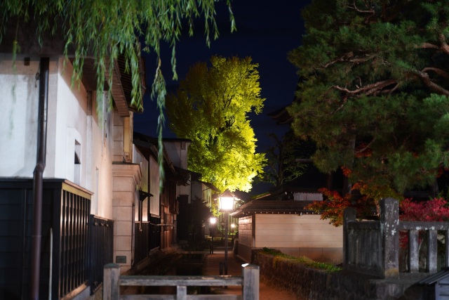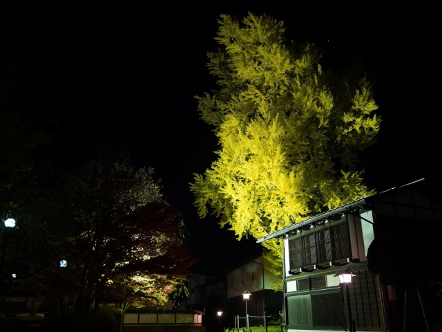 瀬戸川沿いにある樹齢約700年の福全寺跡の大イチョウのライトアップ。
