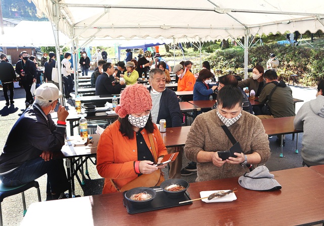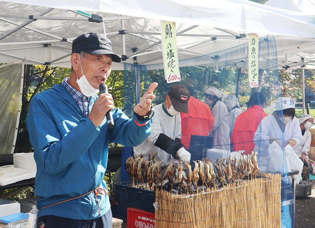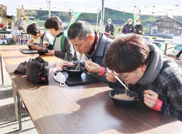 二日目は、手打ちそばはもちろんのこと、種蔵で収穫したあぶらえ(えごま)を使った「田楽いも」など、種蔵産の野菜の販売や鮎めしなどより多くの品ぞろえとなり、秋の味覚を十分楽しんでいただけます。