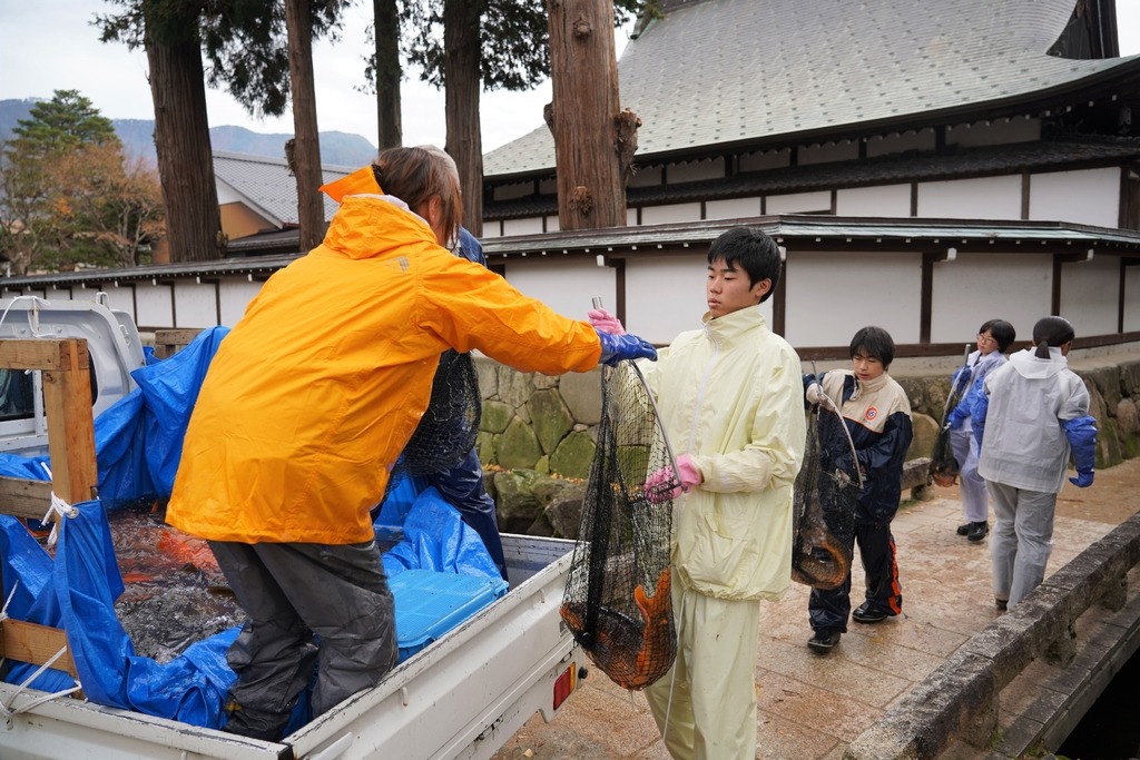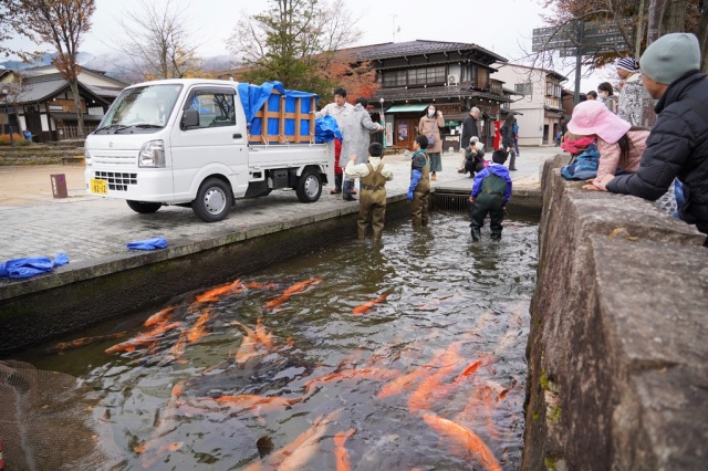 飛騨古川の冬の風物詩 瀬戸川の鯉の引越し
