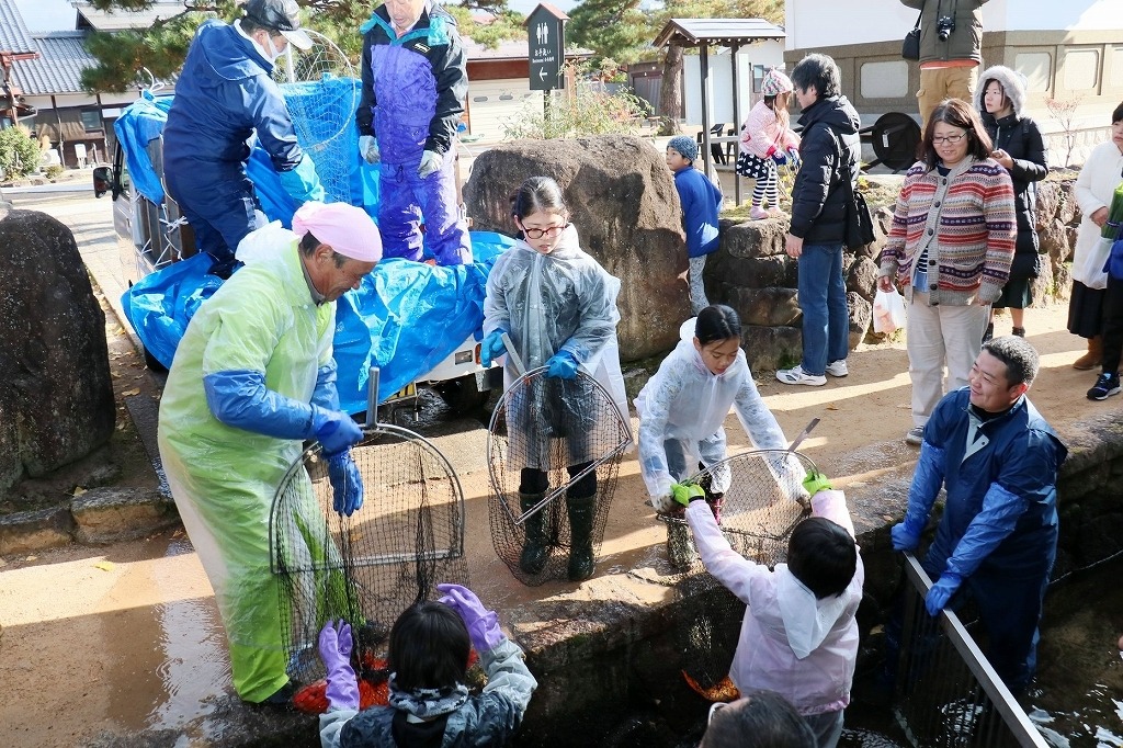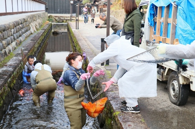 飛騨古川の人気スポット“瀬戸川”に鯉が里帰り
