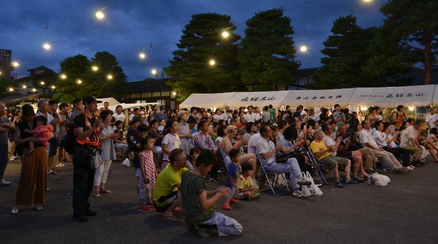 飛騨高山陣屋前夜市(ひだたかやまじんやまえよいち) 飛騨高山の風物詩、陣屋前朝市が夜にも開催!ライトアップされた高山陣屋の前で夜市が開催されます。広場に特設ステージが設置され、賑やかな演奏や踊りの発表、夜店や体験が楽しめるちびっ子コーナーなど、家族そろって楽しめるイベントです。※荒天の場合、中止となる場合がございます。 エリア 飛騨 高山市 カテゴリー 祭り・伝統行事 グルメ Loading... フォトツアーを見る 基本情報 開催期間 2025年8月4日(月)~5日(火) 開催時間 18:00~20:30 開催場所 陣屋前広場 住所 岐阜県高山市八軒町1丁目5 電話番号 0577-36-1011 問い合わせ先 飛騨・高山観光コンベンション協会 駐車場(普通自動車) なし(近隣の有料駐車場をご利用ください) 関連資料 チラシ_2025陣屋前夜市