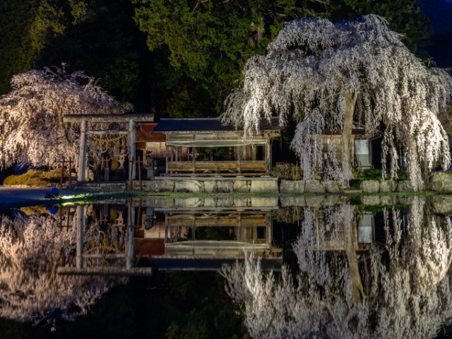 開花に合わせてライトアップも行われ、昼の美しさとはまた違う美しさを見せます。