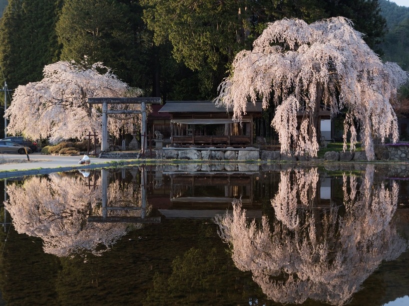 高山市朝日町に数多くある「枝垂れ桜」の中でも代表する1本です。