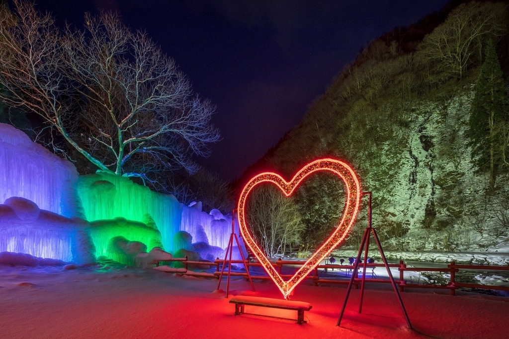 ○タルマかねこおりライトアップ(新平湯温泉) 12月下旬~2月末日