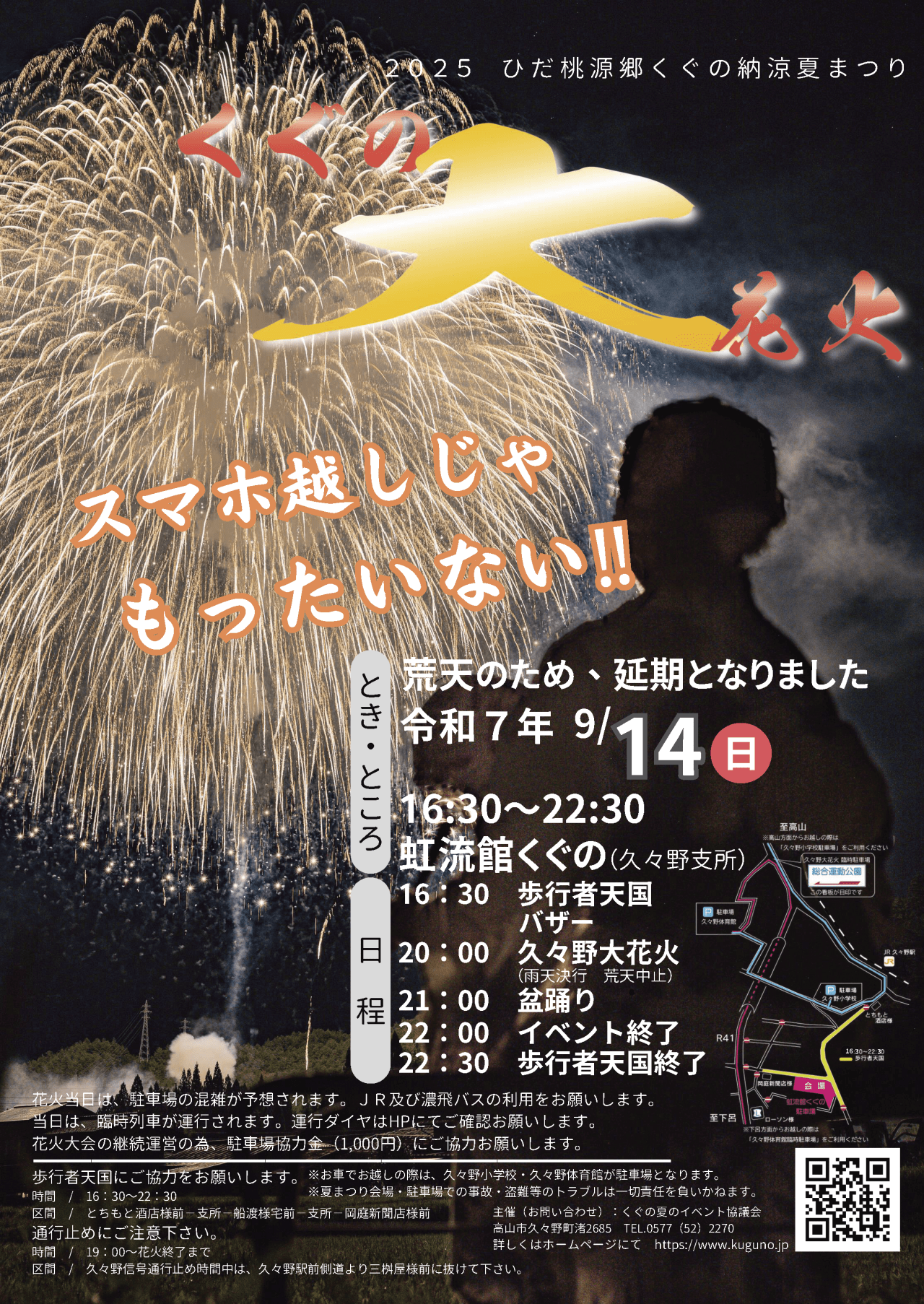先日開催された久々野花火大会には、延期や当日の小雨にもかかわらず、多くの皆さまにご参加いただき、本当にありがとうございました。
