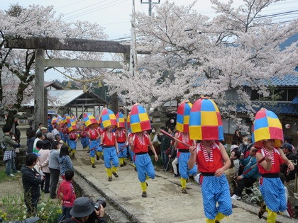 映画「男はつらいよ」のロケ地にもなった安弘見神社の杵振り花馬祭りは、毎年春に行われます。