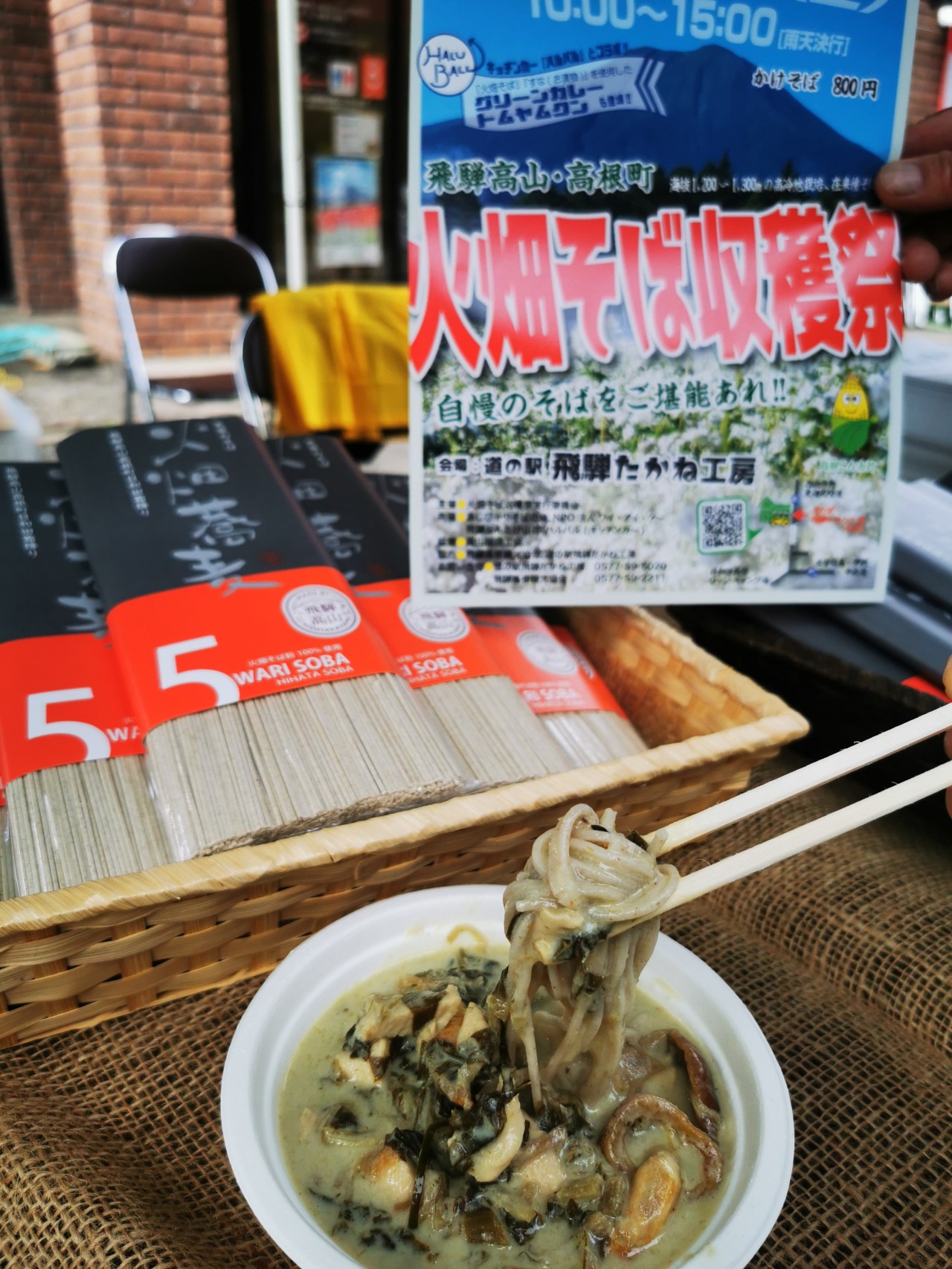 『火畑蕎麦』とは、標高1,000メートルを超える高地で、春に野焼きを行いミネラル豊富な蕎麦へと成長します。また、収穫前に霜にうたせることで小粒ながらも香りが高く、風味豊かな蕎麦となります。当日は、収穫したばかりの新蕎麦『火畑蕎麦』を、温かいかけそばで販売します。