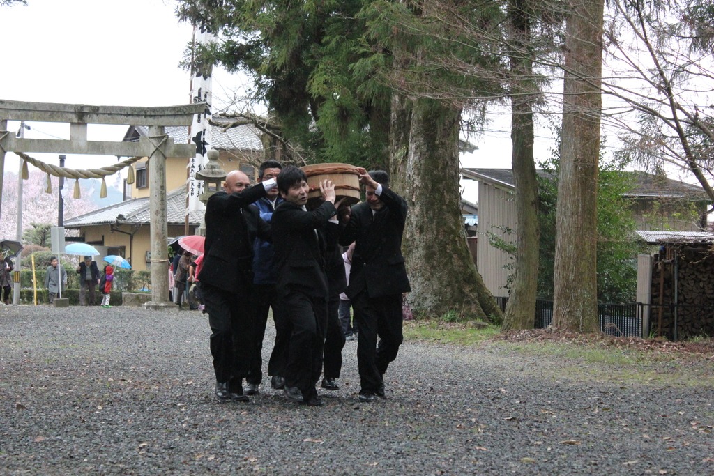 『桶がわ祭り』の由来は、赤飯を取り合う際に、激しい取り合いにより桶の底が壊れて、桶の側面(がわ)しか残らなかったことから来ているとも言われています。この地域では、お祭りが終わった後から稲作の準備に入るという伝統的なお祭りです。