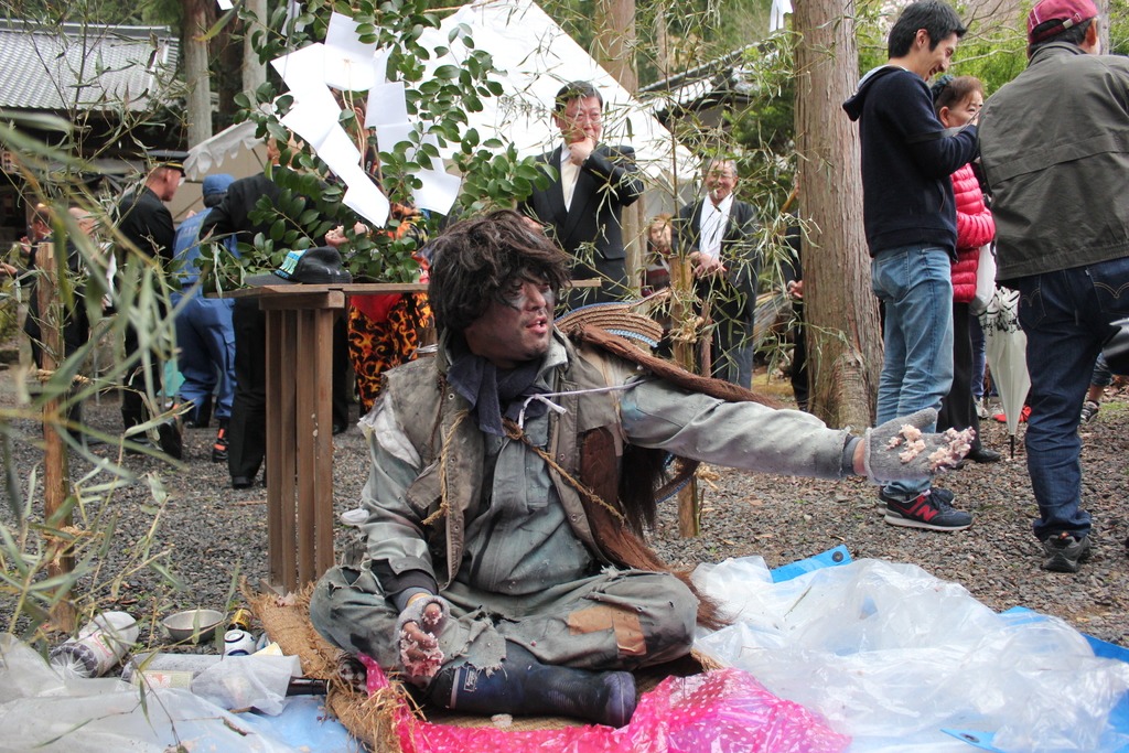 江戸時代から続く言い伝えによると…昔、この地域で飢饉が続いていた際、村に住み着いた乞食(こじき)に食べ物を分け与えたところ豊作に恵まれたことから、この乞食(こじき)が神様の使者だったのではないかと言い伝えられており、以降、豊作を願うお祭りとして現代まで語り継がれて来ました。