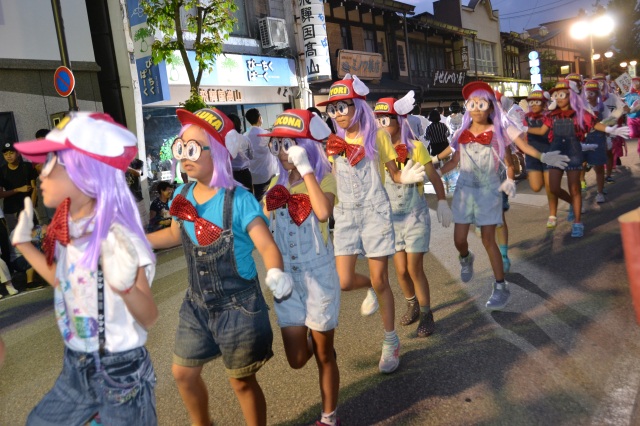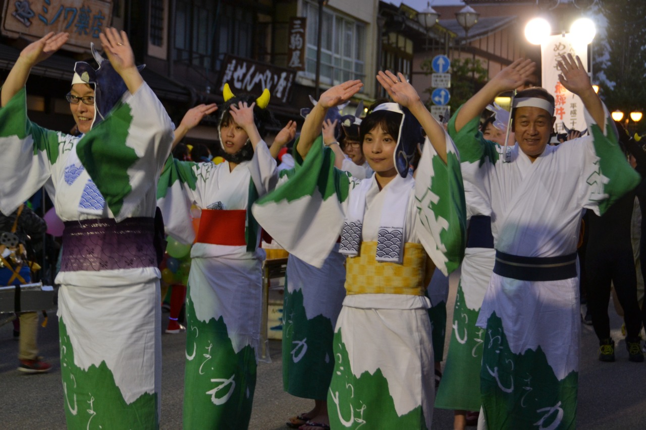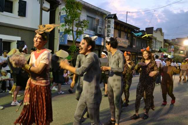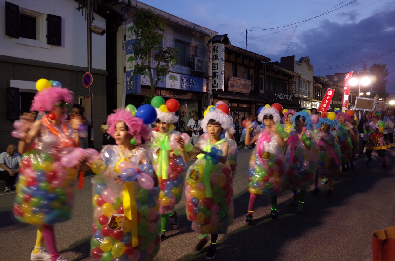 恒例の『ちょけらまいか大仮装盆踊り大会』が今年も開催されます。飛騨弁で「ちょける」とは「ふざける」、「~しまいか」は「~しませんか」という意味です。各チームがテーマを持って趣向を凝らした仮装で「ちょけらまいか」のオリジナルソングに合わせて踊ります。夏の飛騨高山を熱く盛上げる、とても愉快な盆踊り大会です。