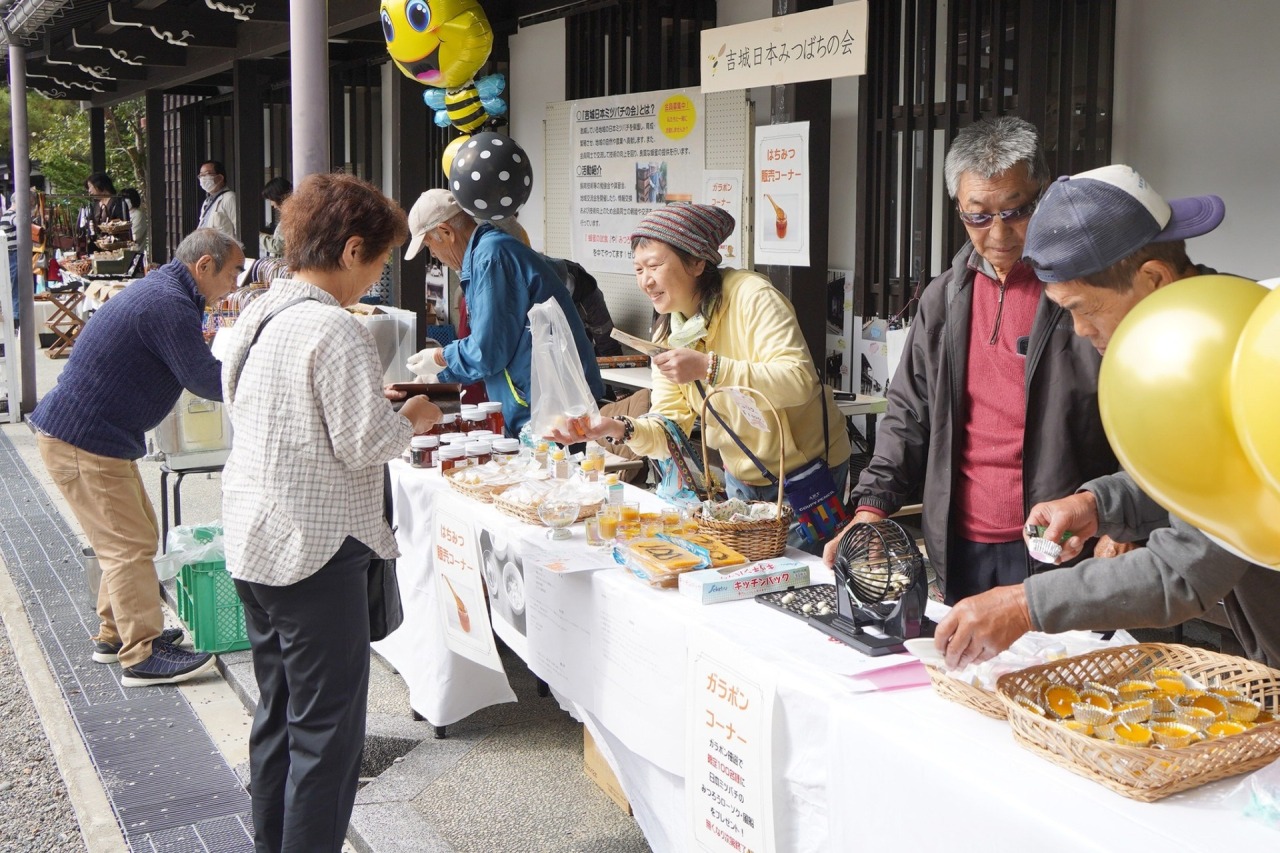 会場内(三寺朝市付近)には、「たいもの品評会」などさまざまな展示がありどなたでも見学いただけます。また、昨年度も開催し大人気だった「吉城日本みつばちの会」のワークショップも開催されます。その他、飛騨市内で採れた野草を使用し作られたお茶の試飲会もあります。
