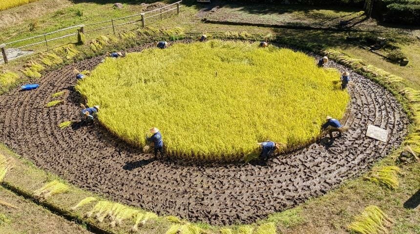 岐阜県の重要無形民俗文化財に指定されている、松之木町の車田の稲刈りが行われます。