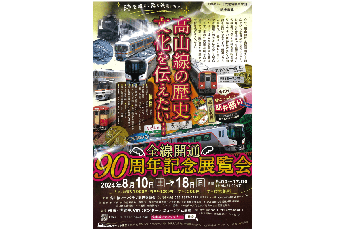 今年、高山線は全線開通90周年という節目の年を迎えます。岐阜から富山までを縦断するこの鉄道は、多くの紆余曲折を乗り越え、その軌跡は数多くの物語を紡いできました。鉄道ファンのみならず、鉄道に詳しくない方や家族連れの方々にも楽しんでいただける、壮大な展覧会を開催します。集めた貴重な展示品を通じて、高山線の豊かな歴史と文化を感じてください。