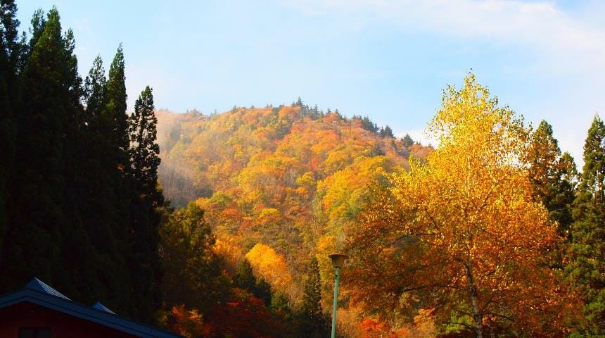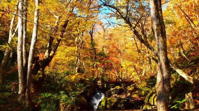 紅葉が美しい宇津江四十八滝では、毎年11月3日に宇津江四十八滝秋の感謝祭が行われます。名物「四十八(よそはち)汁」のほか、地元で採れたリンゴや木工製品の販売があり、地元はもとより県外からもたくさんの方が訪れ、美しい紅葉と滝の競演を楽しみます。紅葉散策のあとは近隣の日帰り温泉施設「しぶきの湯」へ。冷えた体も温まります。