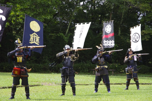 戦国武将の甲冑劇と火縄銃実演 in 飛騨の里