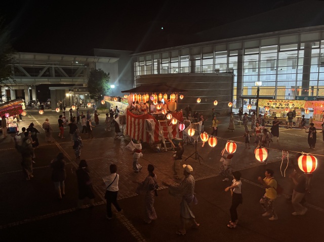 太鼓と歌が響き渡る、お囃子にのせて、初めての人も気軽に楽しめる盆おどり