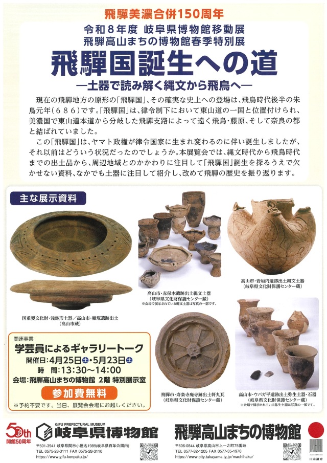 飛騨高山まちの博物館春季特別展「飛騨国誕生への道~土器で読み解く縄文から飛鳥へ~」