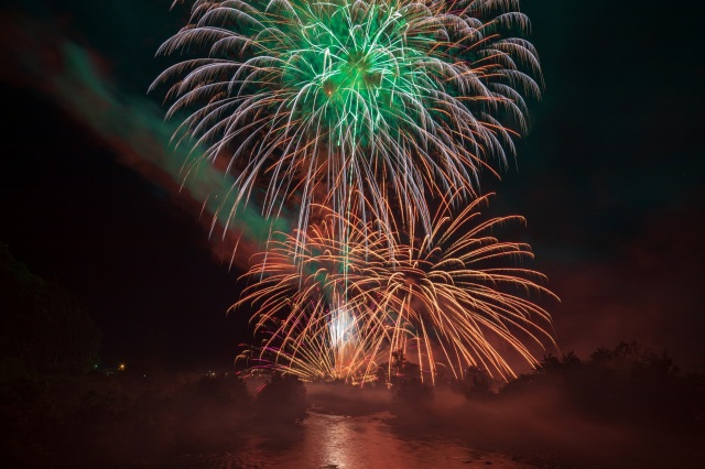 - 飛騨高山の夏の夜空を大乱玉、スターマインなど大輪の花火が鮮やかに彩ります。