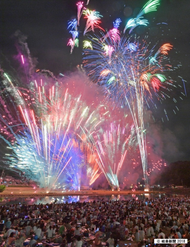 - 平成30年7月豪雨災害で大きな被害を受けた場所から花火を打ち上げ、災害復興祈願と新時代への願いを込めます。会場付近は山々に囲まれており、花火の音が反響するため迫力抜群です。