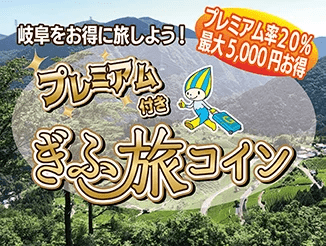 購入金額に対して20%のポイントを上乗せするプレミアム付きぎふ旅コインです。