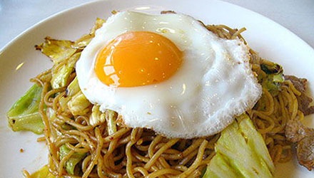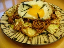 たじみそ焼きそばの定義は、「?ピリ辛味噌を使用した焼きそば」 「?半熟たまごがのって、味噌と絡めて頂けること」の2点です。