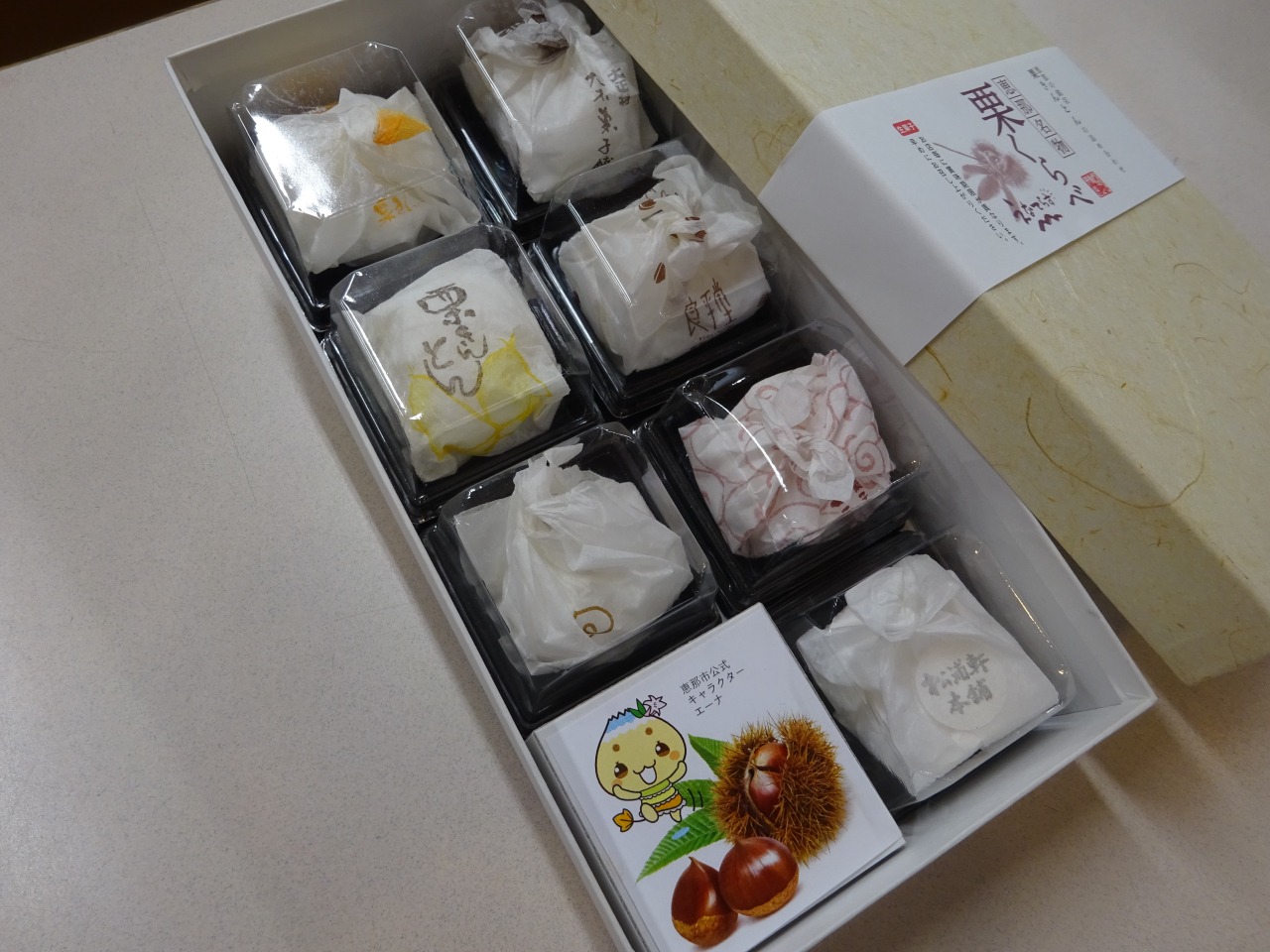 今年は市内和菓子店7店舗の栗きんとんを一つの箱にてご用意しました。
