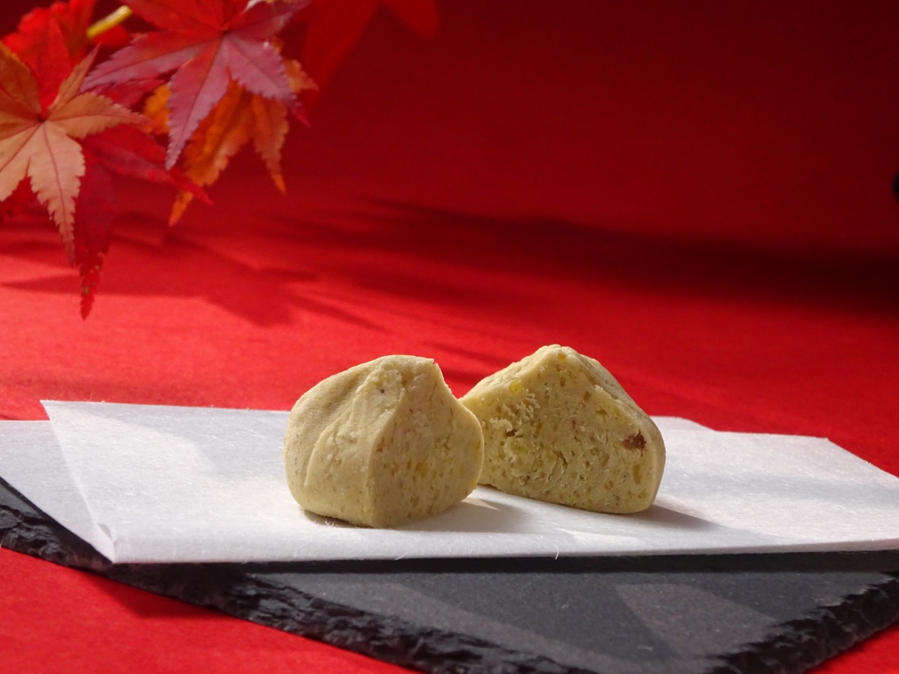 炊き上げた栗に少量の砂糖を加えて、布巾で1つ1つ絞って丁寧に作られる「栗きんとん」は、栗の旬である秋にのみ作られる伝統の和菓子です。栗の味そのものを活かした山の秋を思わせる味わいが特徴で、茶巾絞りに似た愛らしい形をしています。そのほんのり甘くほっこりとした味わいがいつしか広く知られるようになりました。