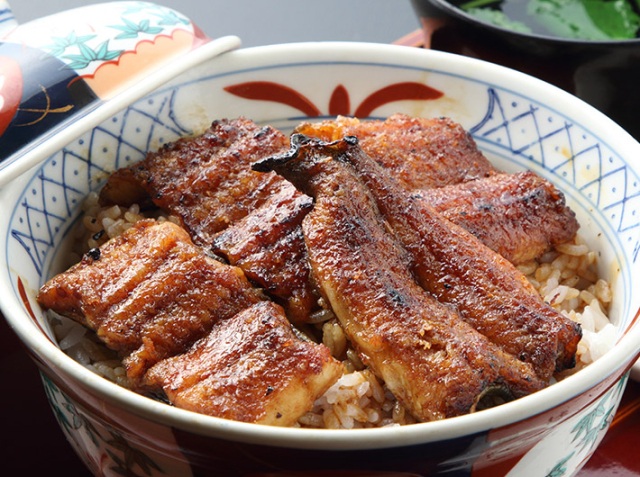 創業より継ぎ足し続ける秘伝のタレを絡めて、炭火で香ばしく焼き上げる大きなうなぎは、外はパリっと、中はふんわりとろとろ。こんもりと盛ったご飯とも相性抜群です。