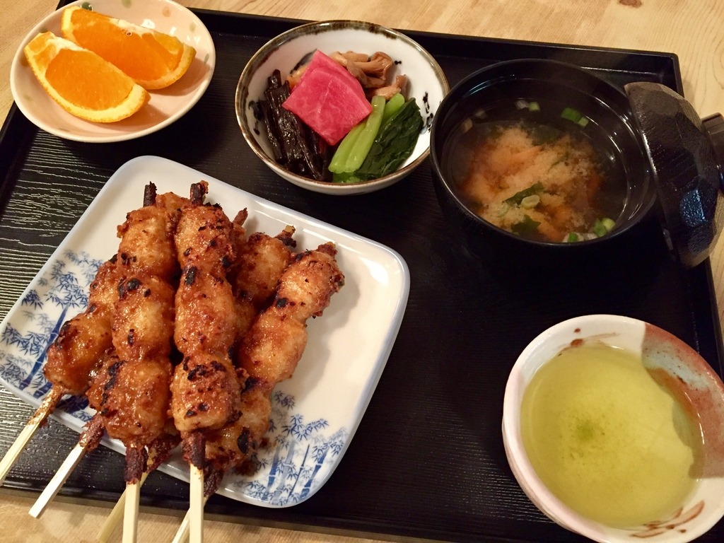 五平餅とは東濃地方の名物で、郷土食で、つぶしたご飯を丸め、串に刺し、醤油、砂糖、胡麻、くるみなどで出来た秘伝のたれをつけて焼いたものです。