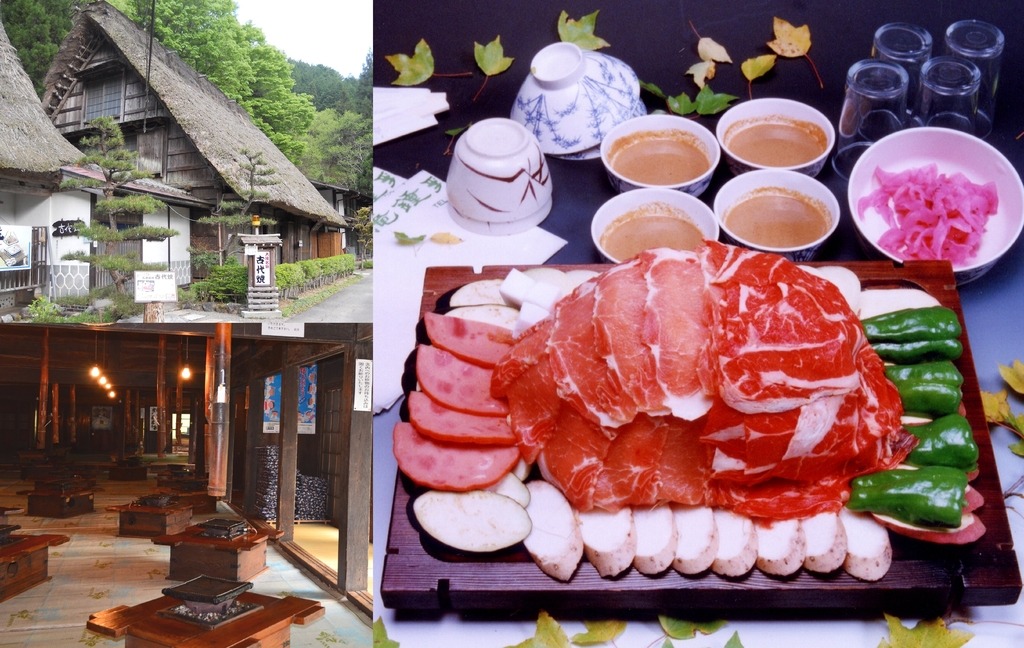 大滝鍾乳洞敷地内にある、白川郷より移築した合掌造りのお食事処で、囲炉裏風のお席にていただく焼肉料理です。