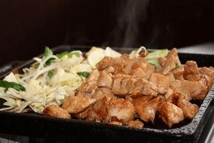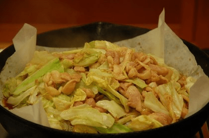 鶏肉とキャベツなどに特製のタレを絡め、鉄板やジンギスカン鍋などで焼ながら食べる「鶏ちゃん」。