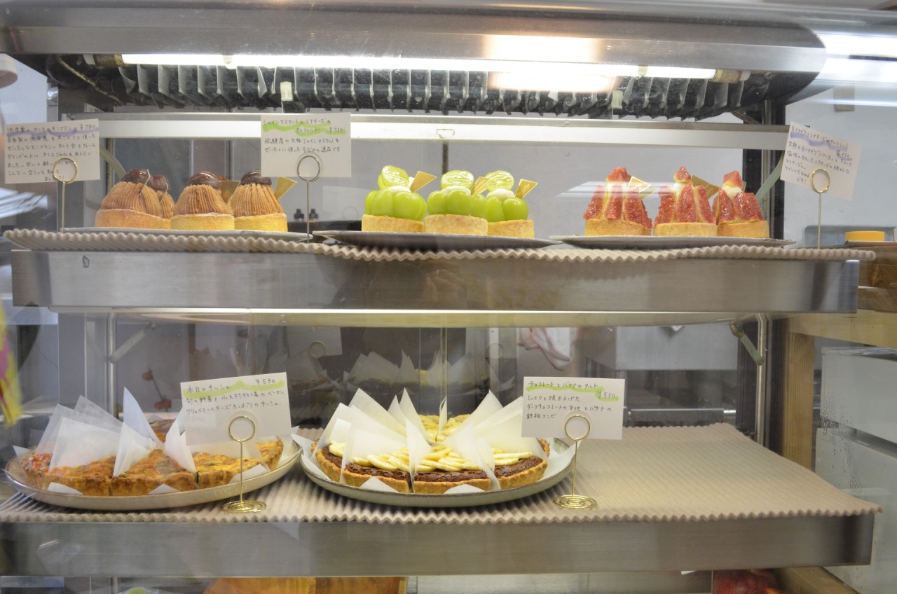 店内のショーケースには、季節の果物や野菜を使ったタルトやキッシュが並びます。