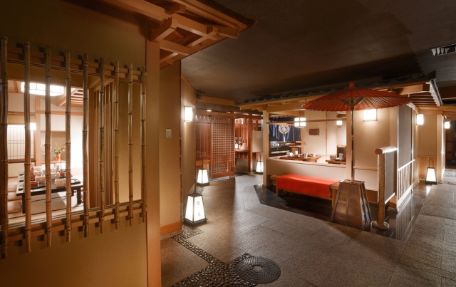 - 店内に入ると、まず中央を格子に仕切ったテーブルにご案内。お客様自らが引き上げ湯葉をお取りいただき、心ゆくまでお召し上がりいただきます。その後は奥座敷にご案内。料理は土地の山川の幸と豆腐が中心で、野趣に富んだ素材を季節に合わせてご用意します。
