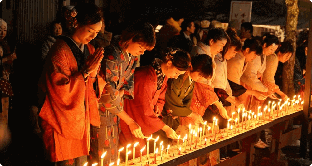 3つのお寺や町に灯るろうそくの数々を見ながら