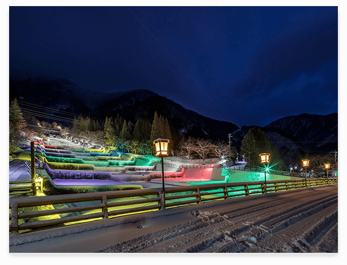 毎週土曜日の夕食後、冬の「下呂温泉花火物語」を開催。