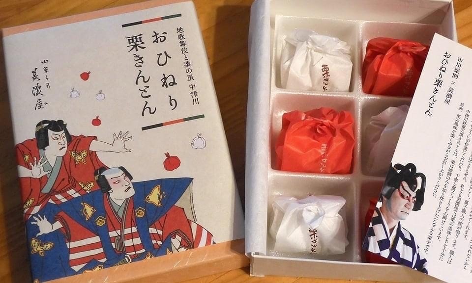 「朴葉寿司」や「五平餅」など、ご当地グルメは大人気です。また、おひねりをイメージした「おひねり栗きんとん」、“白波五人男“の役者をデザインした包装紙に包まれた栗羊羹「恵奈くり五人男」など、地歌舞伎をテーマにしたお土産もあるので購入してみては。